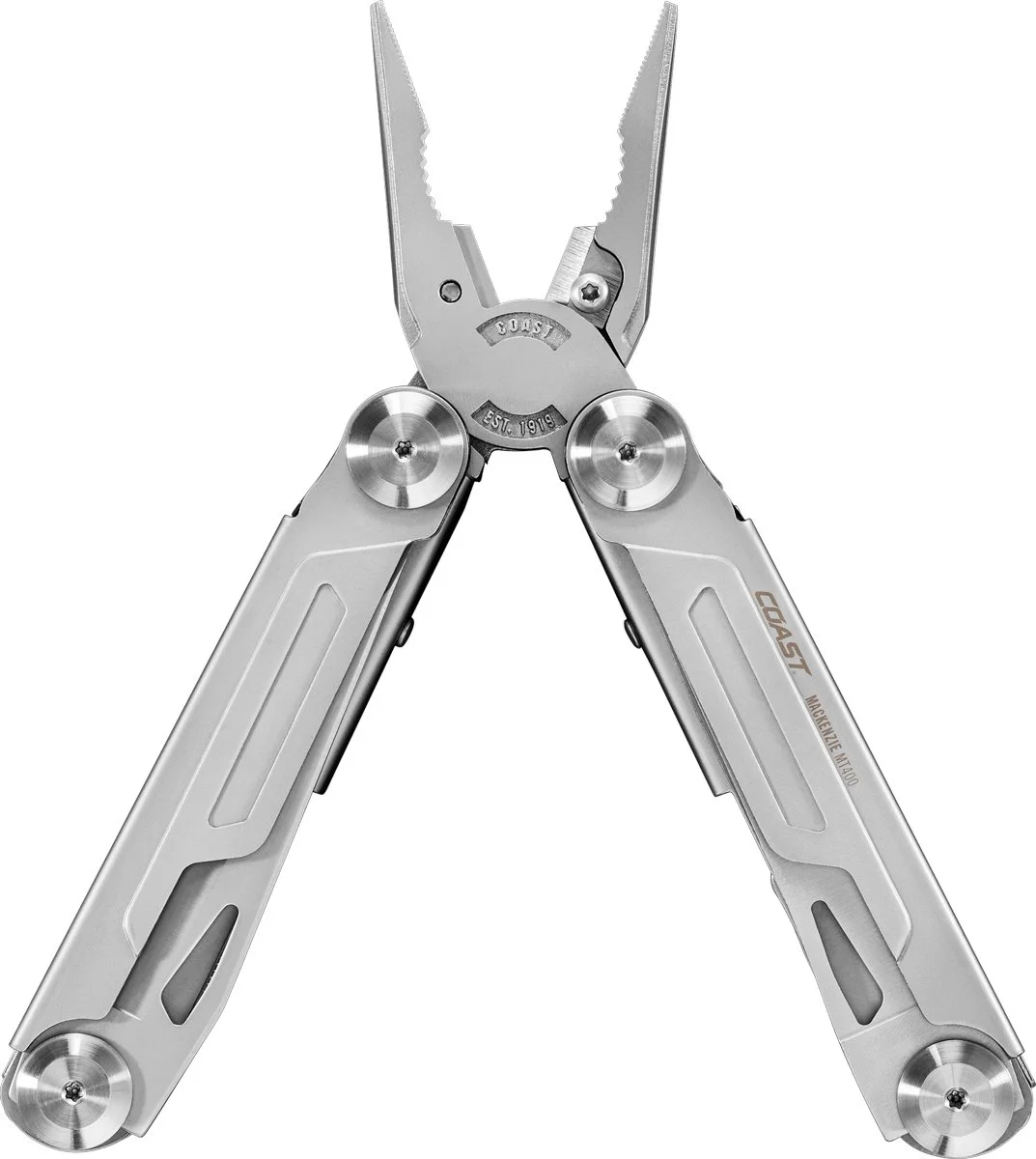 Das COAST MT400 ist ein durchgehend solides Multitool aus rostfreiem Stahl mit insgesamt 13 Funktionen, Slip-Joint-Verriegelungsmechanismus und praktischer Aufhängung – entwickelt für Handwerk, Service und Outdoor.