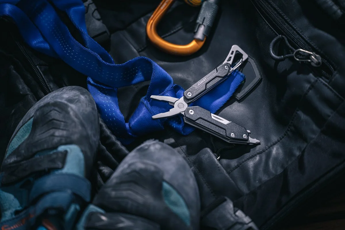 Die Werkzeuge sind von außen zugänglich und ermöglichen einen schnellen Zugriff – ohne dass der Zangenkopf geöffnet werden muss. Bietet 8 integrierte Funktionen: Klinge, Sägeblatt, Federzange, Kreuzschlitzschraubendreher, Schlitzschraubendreher, Flaschenöffner und Sechskantschlüssel. Der Karabinerhaken am Ende dient sowohl als Clip als auch als Befestigungspunkt für Tasche, Gürtel oder Aufhängung.
